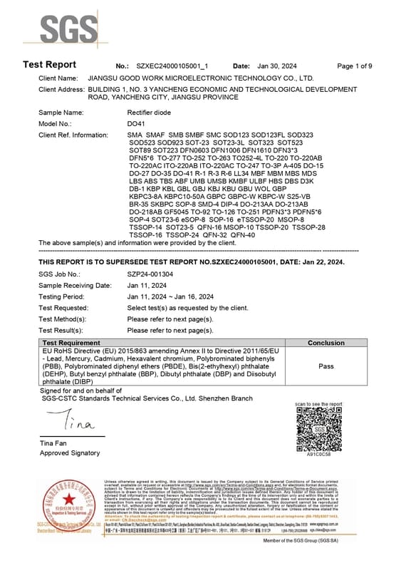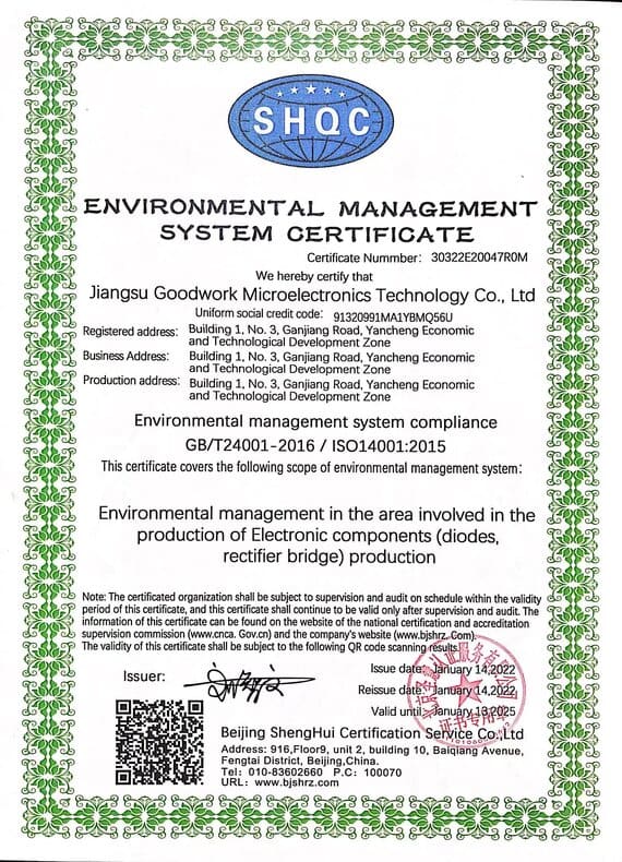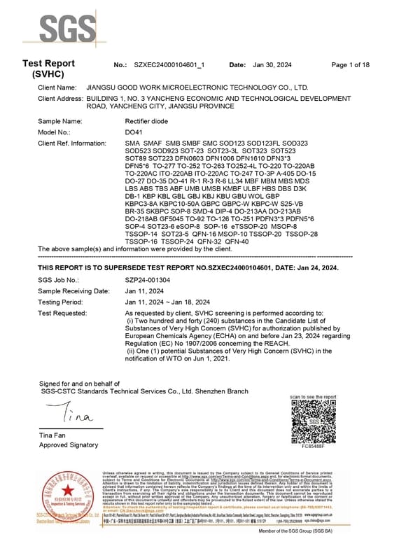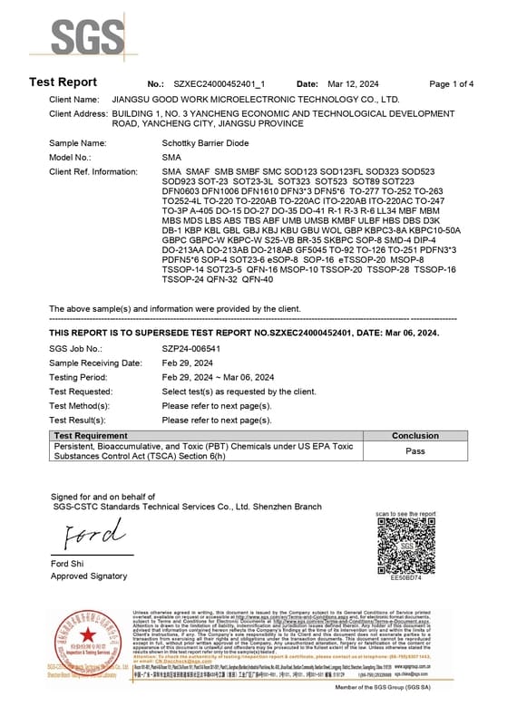 ,Mosfet, Köprü doğrultucular ve Schottky diyotlar ve Optokuplörler. UL, SGS, RoHS, REACH, ISO9001 ve ISO14001 sertifikalarıyla şirket yüksek kaliteli, güvenilir ve çevre dostu olmasını sağlar